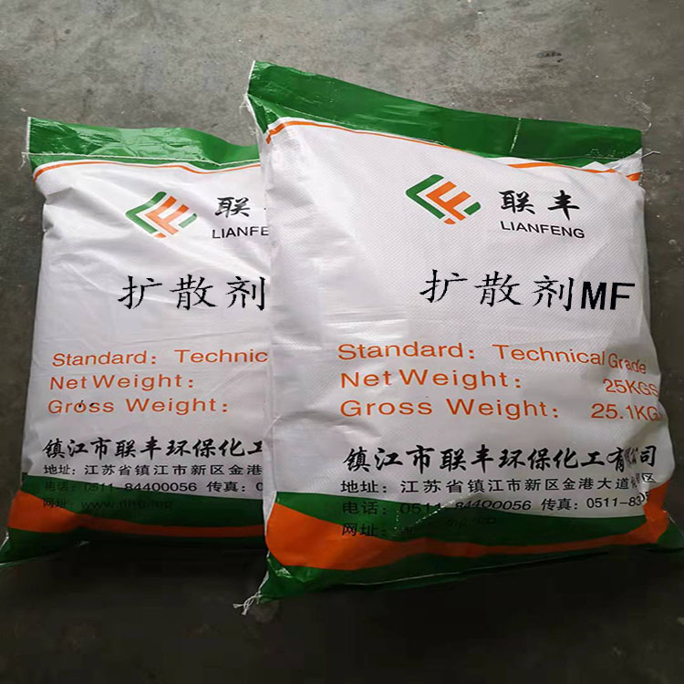 4、分散劑MF可溶于混凝土作強型減水劑,能縮短施工周期,節(jié)約水泥,節(jié)約用水,增加水泥強度。